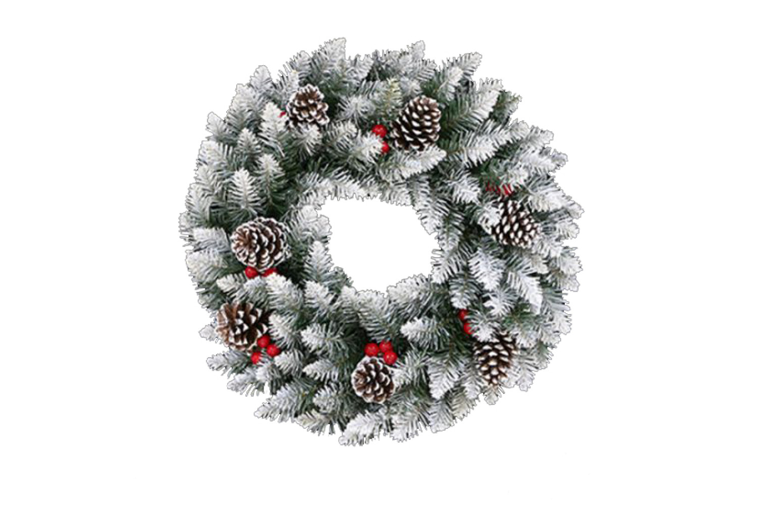 LARGE SPRUCE FROSTED WREATH WITH CONES AND BERRIES