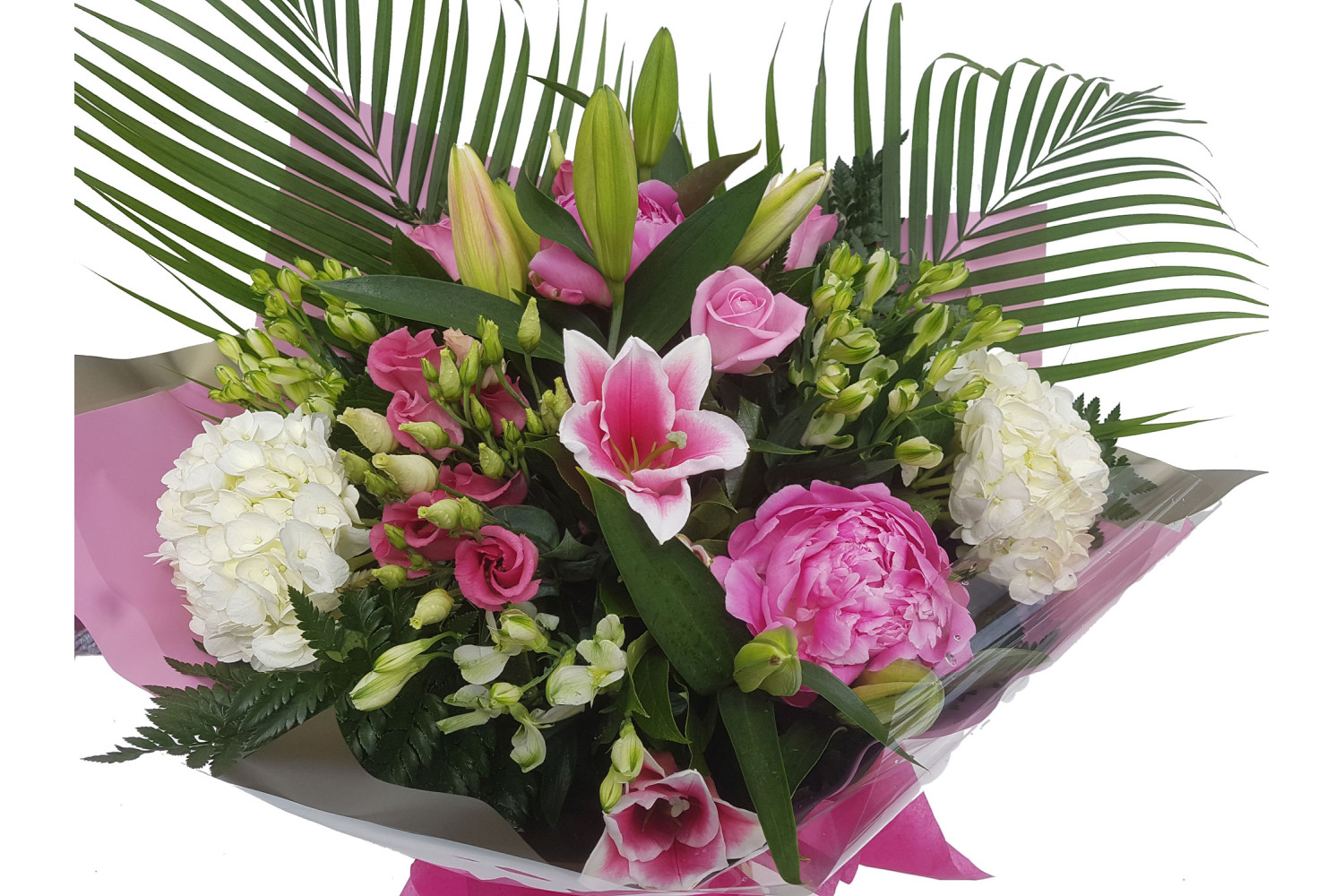 Tags: florist, choice, pink, hand-tied, bouquet, thinking, you, flowers
