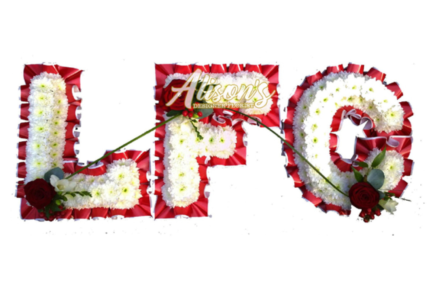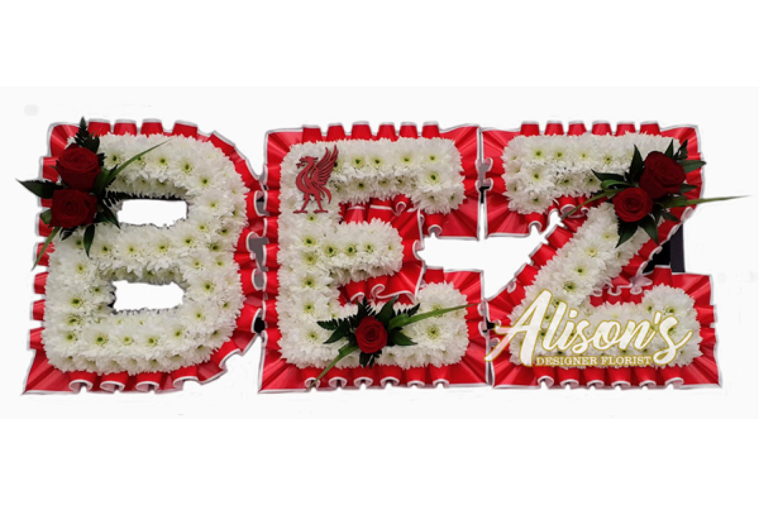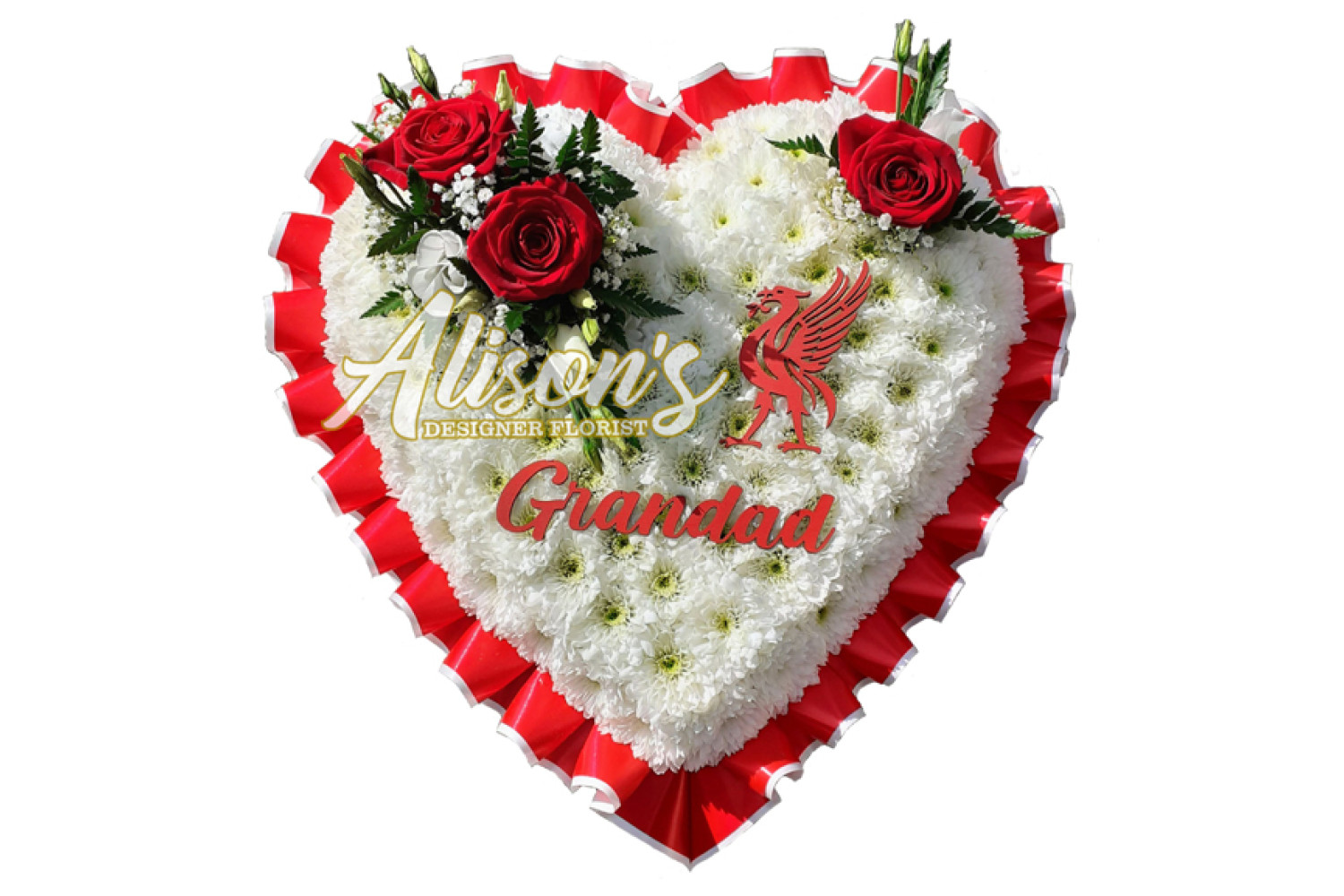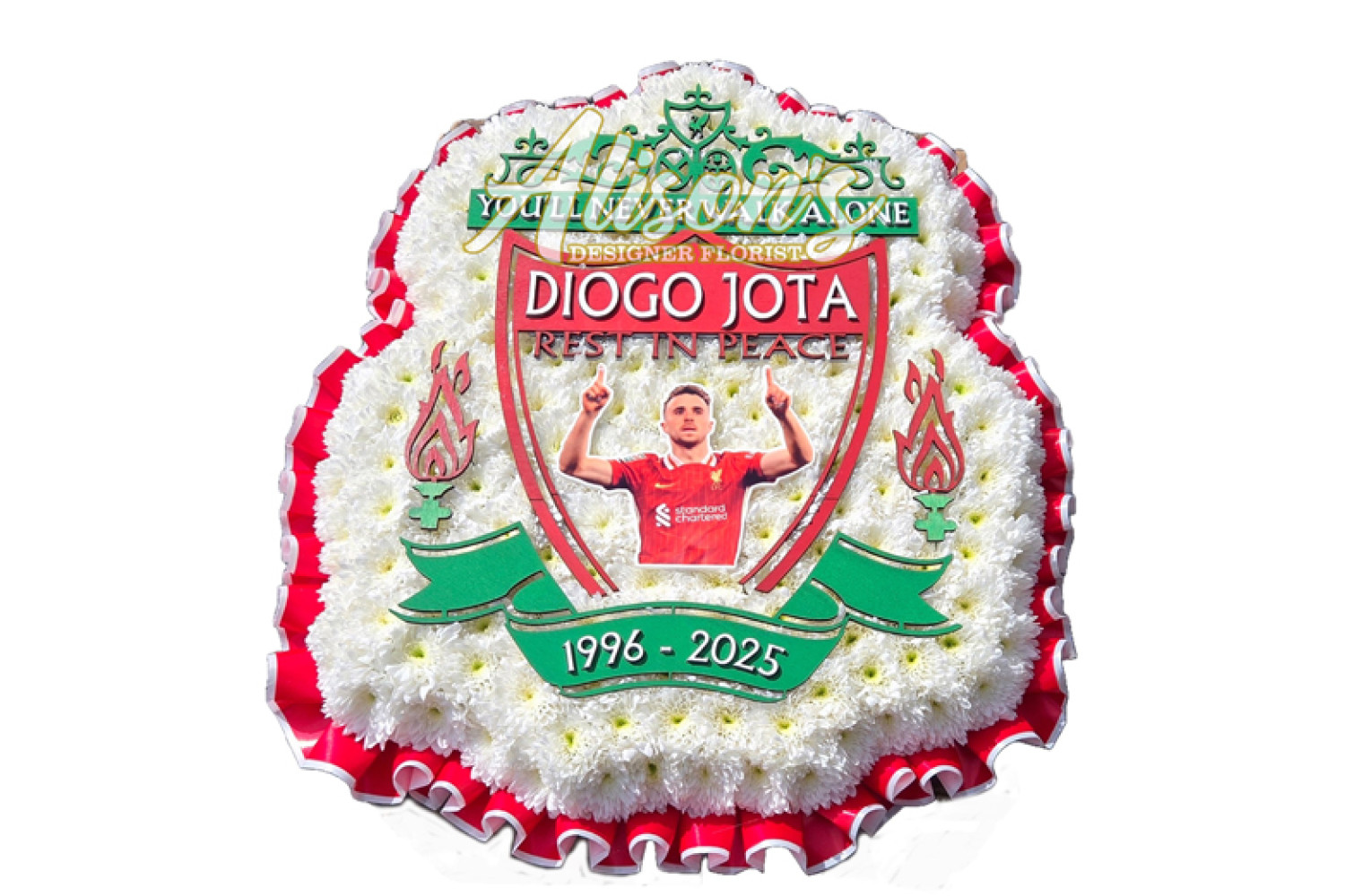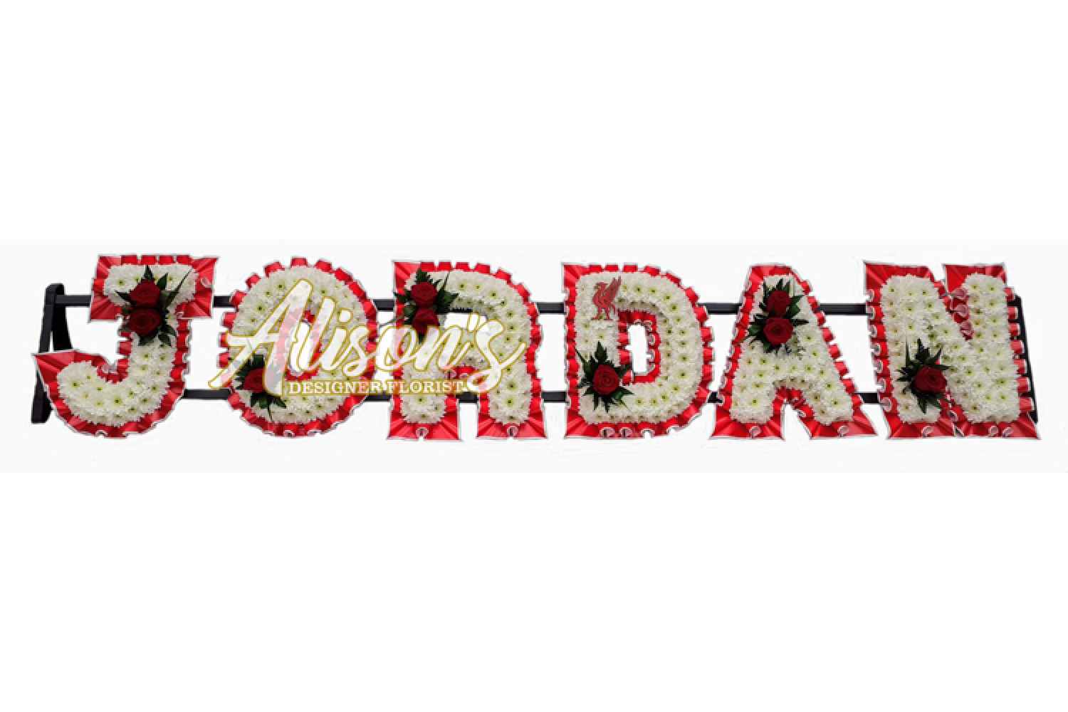 Here are a small selection of our tributes for Liverpool Football Club fans, including bespoke funeral arrangements like the Liverpool badge, you'll never walk alone Scarf, YNWA Cushion, Liverpool Football Shirts and Red & White Casket Sprays which are available here at Alison's Designer Florist. We also offer other sports-themed tributes, such as Dartboard, Rugby Ball, Wigan Athletic badge and many other various funeral flowers.