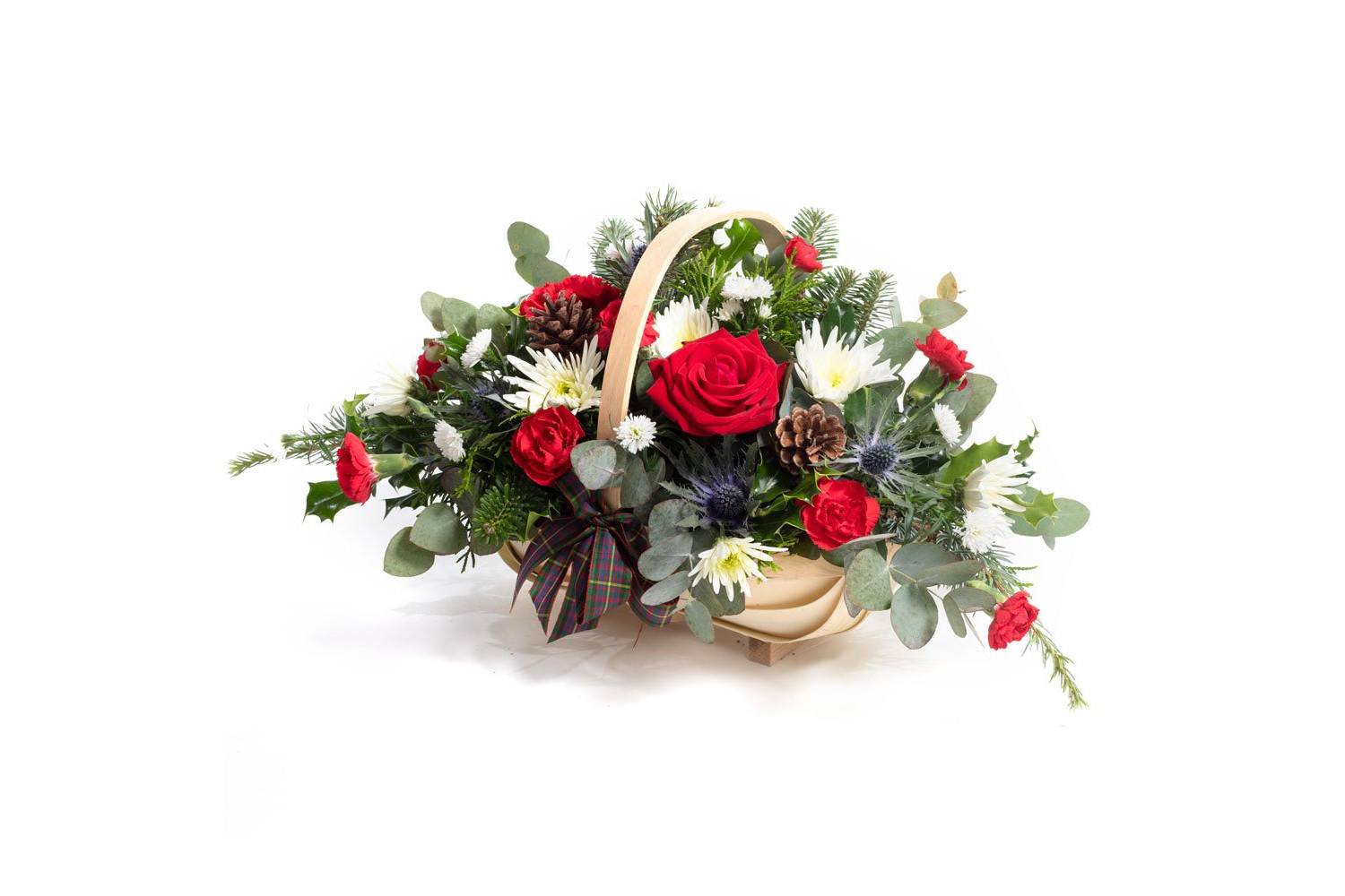 With its seasonal reds and delicate dusting of glitter, this elegant floral arrangement captures some of the magic and splendour of the time of year. This beautiful gift will make a wonderfully christmas gift