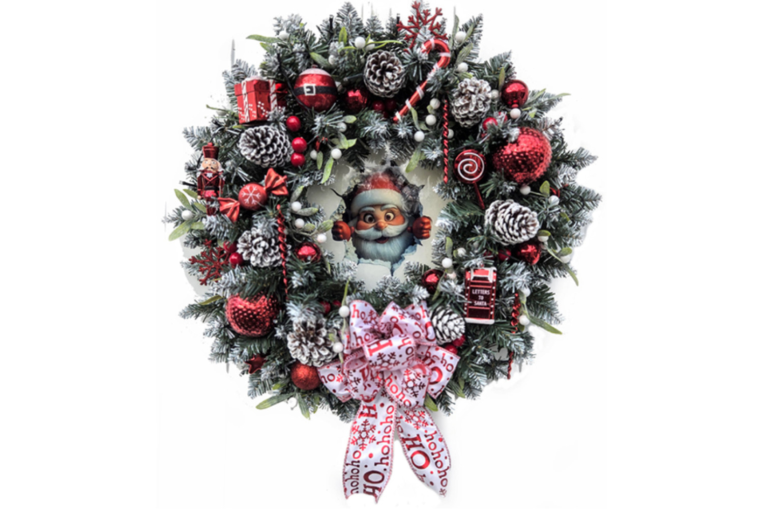 Bring the festive spirit to your home with our charming Christmas Door Wreath featuring a delightful acrylic Santa plaque! This beautifully crafted wreath is adorned with 50 LED battery-operated multi-function lights, creating a warm and inviting glow that will welcome guests all season long. Designed by Alison's Designer Florist in Maghull, this wreath is not just a decoration; it's a statement piece that adds a touch of holiday magic to your entrance. Perfect for spreading cheer, it's time to deck your halls with this enchanting wreath!