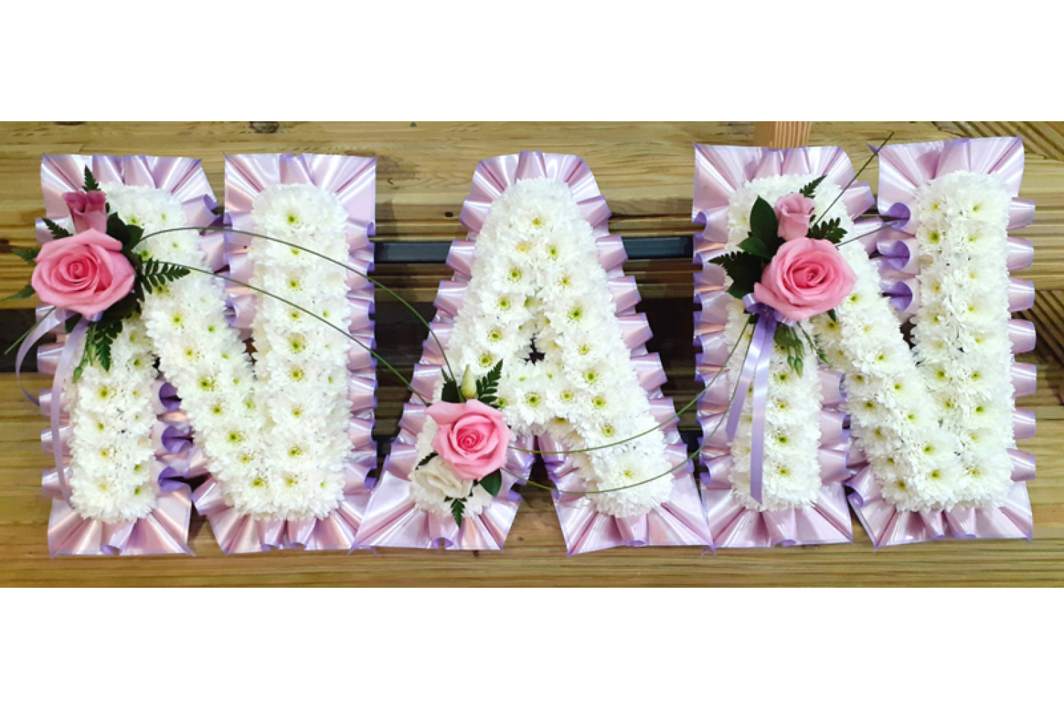 Tags: Nanny, Pink, White, Funeral Letters, Lettering, funeral flowers,