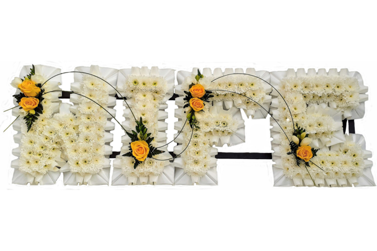 Tags: Sister, White, Funeral Letters, Lettering, funeral flowers,