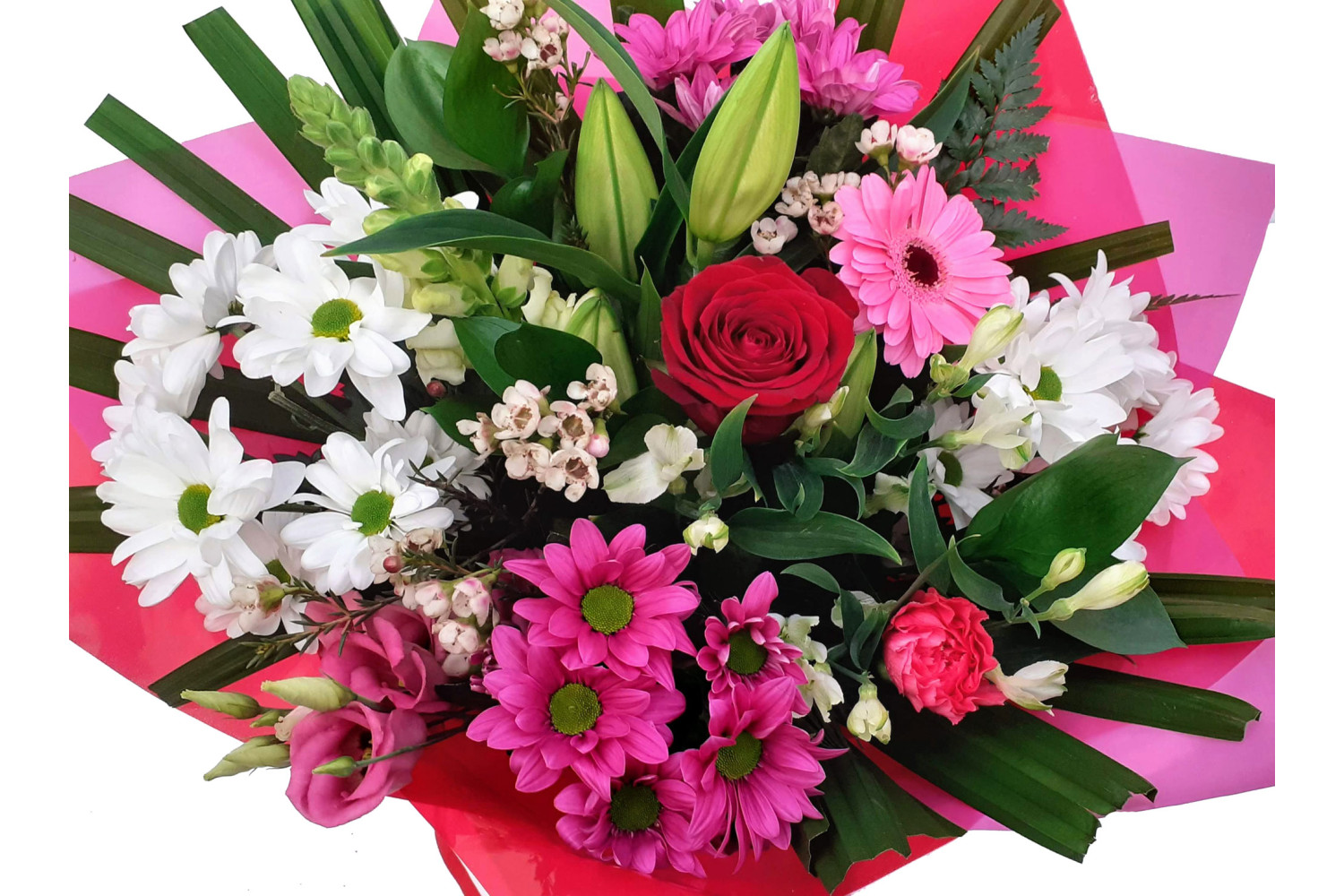 Please note: Due to the seasonal availability of flowers in stock it may be necessary to change some stems from those shown in the picture. Our team of florists will endeavour to substitute flowers for one similar in colour, quality and cost. If the item contains a sundry item such as a vase, basket or gift bag it may not always be possible to include the identical item as displayed. If such a case we will replace the item with a suitable substitution.